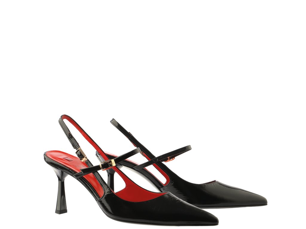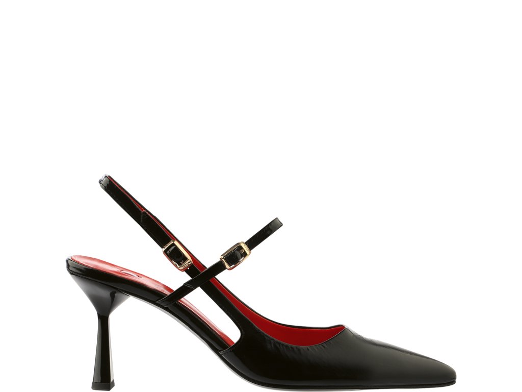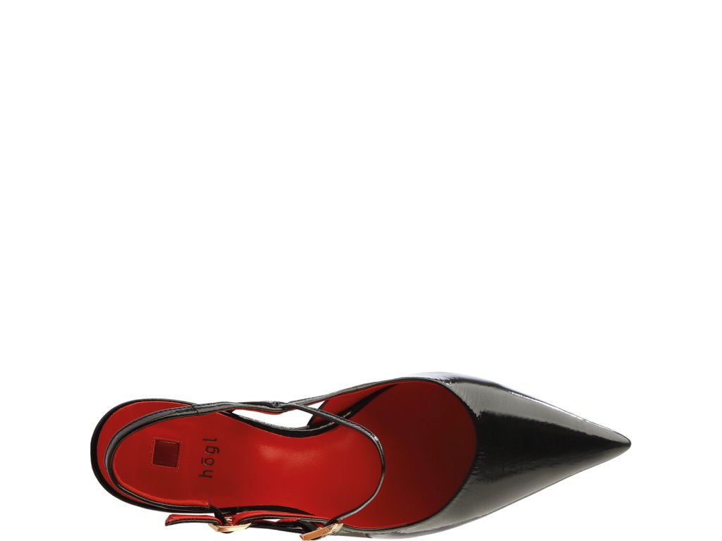 Žádný šatník se neobejde bez černých lodiček – lodičky s remenem Högl „Scarlett“ mají stylový a působivý vzhled. Nízký nárt, špičatá špička a zaoblené podpatky zdůrazňují ženskou siluetu. Pomocí zlatých přezek si můžete individuálně nastavit střih ramínek. Tyto černé lodičky s remenem jsou snadnou volbou pro všechny večerní outfity a vyzařují sebevědomí – například i v kombinaci s naší kabelkou „Doreen“. Tyto lodičky patří do „slavnostní kapsule“ Högl; červená kožená podšívka tak vytváří vzrušující kontrast s černou barvou bot. Inovativní vložky Softline zaručují bezkonkurenční pohodlí.