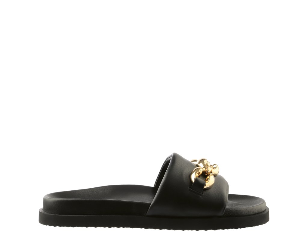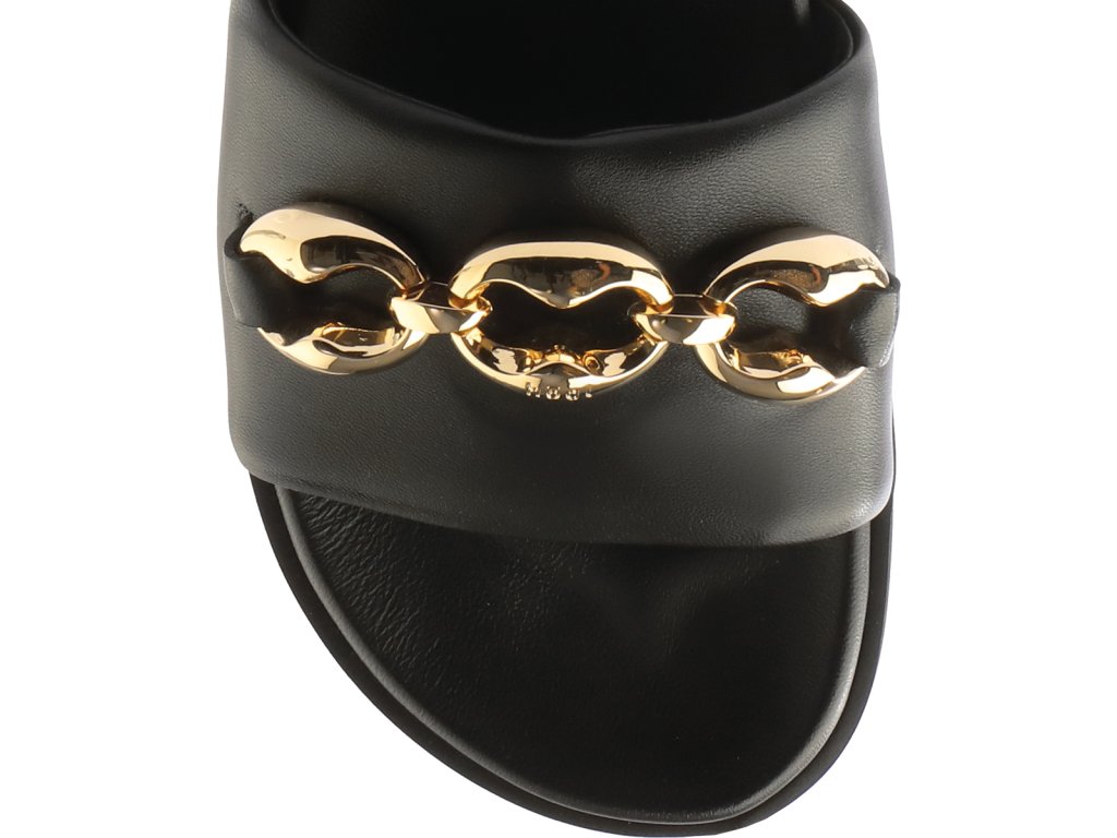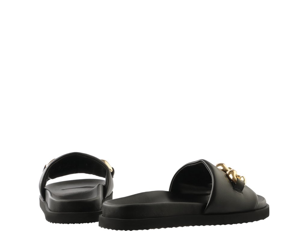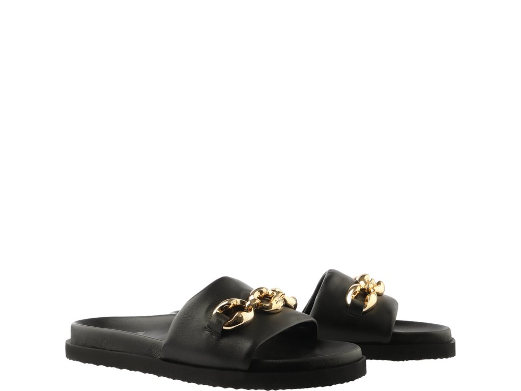„Franka“ jsou klasické letní pantofle s nadčasovým vzhledem. Investujte do těchto monochromatických černých pantoflí  univerzálních bot s elegantním nádechem, který jim dodávají ozdobné široké řetízky. Díky moderní kombinaci stylu a ženskosti jsou tyto ležérní pantofle neuvěřitelně všestranné. Vysoce kvalitní řemeslné zpracování a polstrované ramínka zaručují maximální pohodlí při nošení. Skutečnost, že tyto černé pantofle jsou vyrobeny v Evropě udržitelným způsobem, také hovoří za ně – těšte se na pohodlnou volbu pro váš letní outfit.