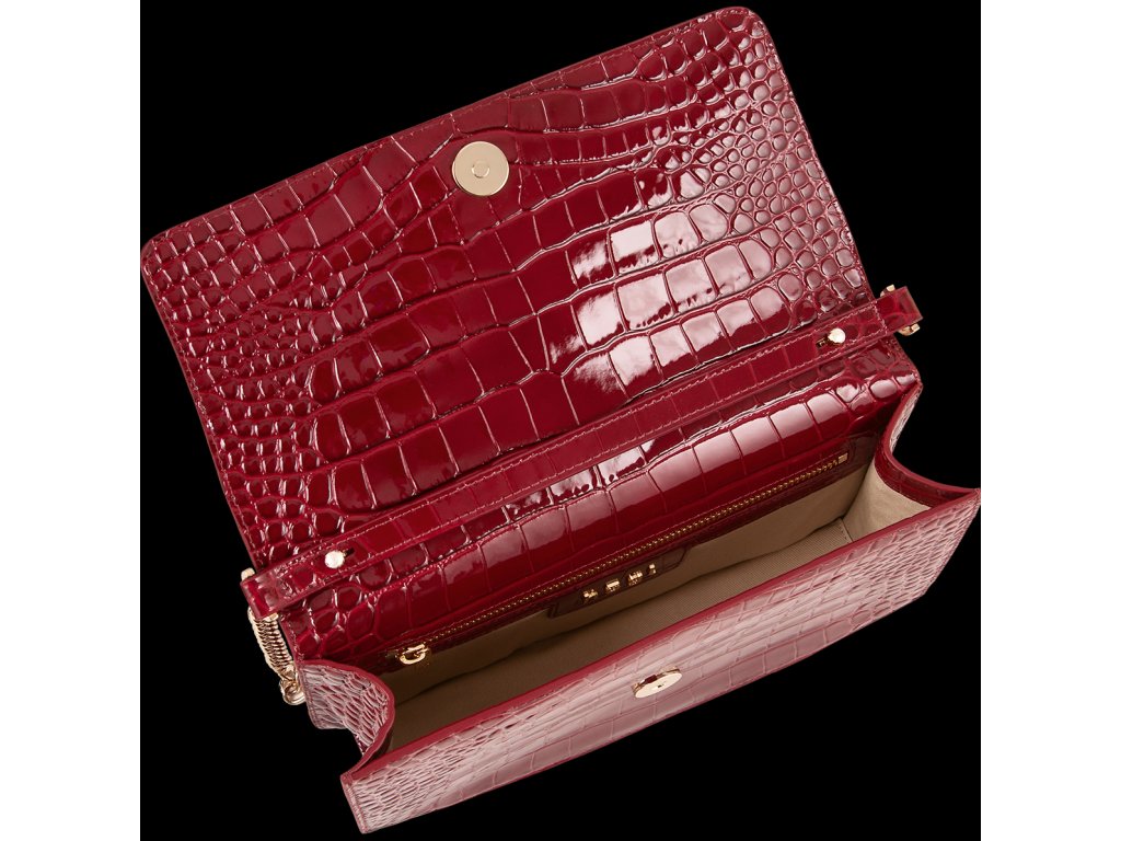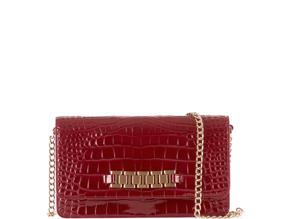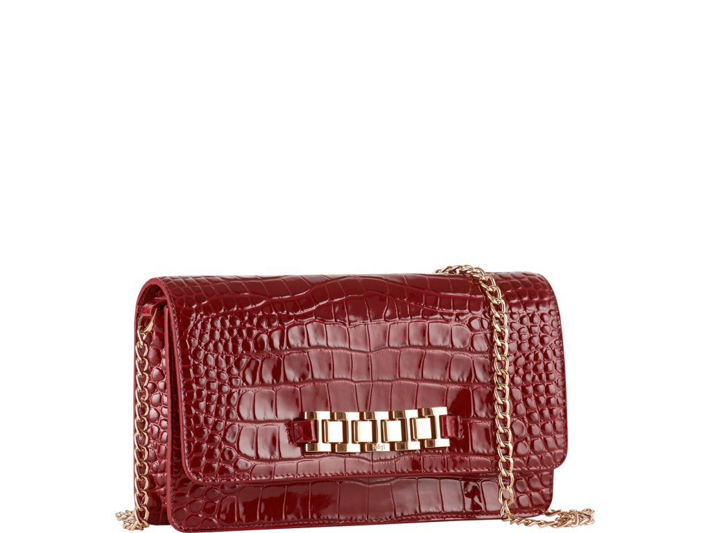 Dámské psaníčko Högl s řetízkem a zlatou sponou. Kabelka je vyrobena z jemné jehněčí kůže s krokodýlím vzorem. Je ideálním doplňkem na různé formální i neformální akce, plesy nebo i svatby. Její design v kombinaci se zlatým řetízkem působí velmi elegantně a decentně. Rozměry: 23.5 x 6 x 13.5 cm. Zapínání je na magnet. Vevnitř kabelky se nachází přihrádka na zip.