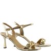 Dámské sandálky Högl na vysokém podpatku jehlového typu. Obuv je vyrobena z jemné hladké kůže s metalickým povrchem. V přední části se nachází pásek se zlatou sponou, nastavitelný řemínek se nachází v oblasti kolem kotníku. Výška podpatku je 80 mm. Kombinace elegantního podpatku a jednoduchého designu v zlatém provedení dodávají obuvi luxusní a nadčasový vzhled. Jsou to lodičky, které Váš outfit pozvednou na zcela výjimečnou úroveň.