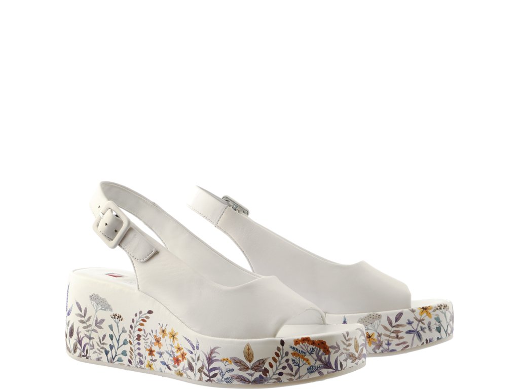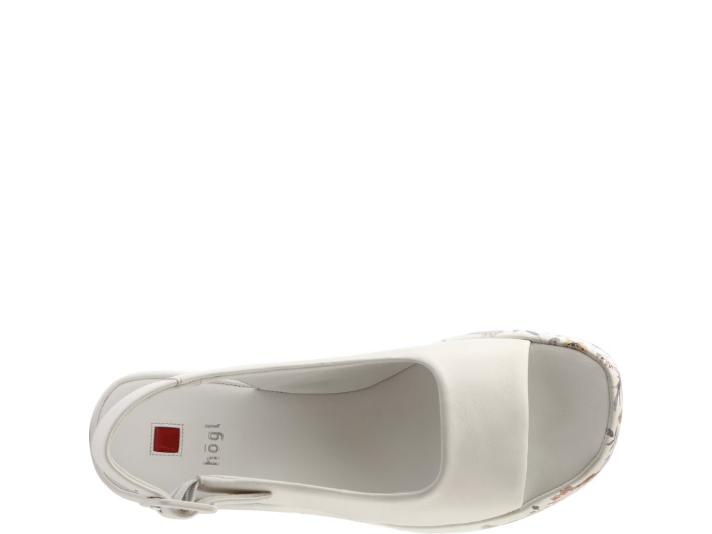 Naše bílé sandály na klínovém podpatku „Loulou“ jsou chytrou kombinací designu a prvotřídního řemeslného zpracování. Exkluzivní potisk Högl s barevnou nádherou květin se nazývá „Oh me, oh my“. Stejně úžasná je i jejich měkkost a výjimečné pohodlí při nošení, kterého je dosaženo inovativní a propracovanou technikou Sacchetto. Protiskluzová podrážka a pásky s nastavitelnými přezkami zaručují stabilitu i přes vysoké klínové podpatky těchto sandálů. Tyto super pohodlné sandály na klínovém podpatku, které jsou součástí exkluzivní řady Högl Butterflight, jsou fascinující volbou k monochromatickým outfitům a jednoduše ztělesňují letní atmosféru.
