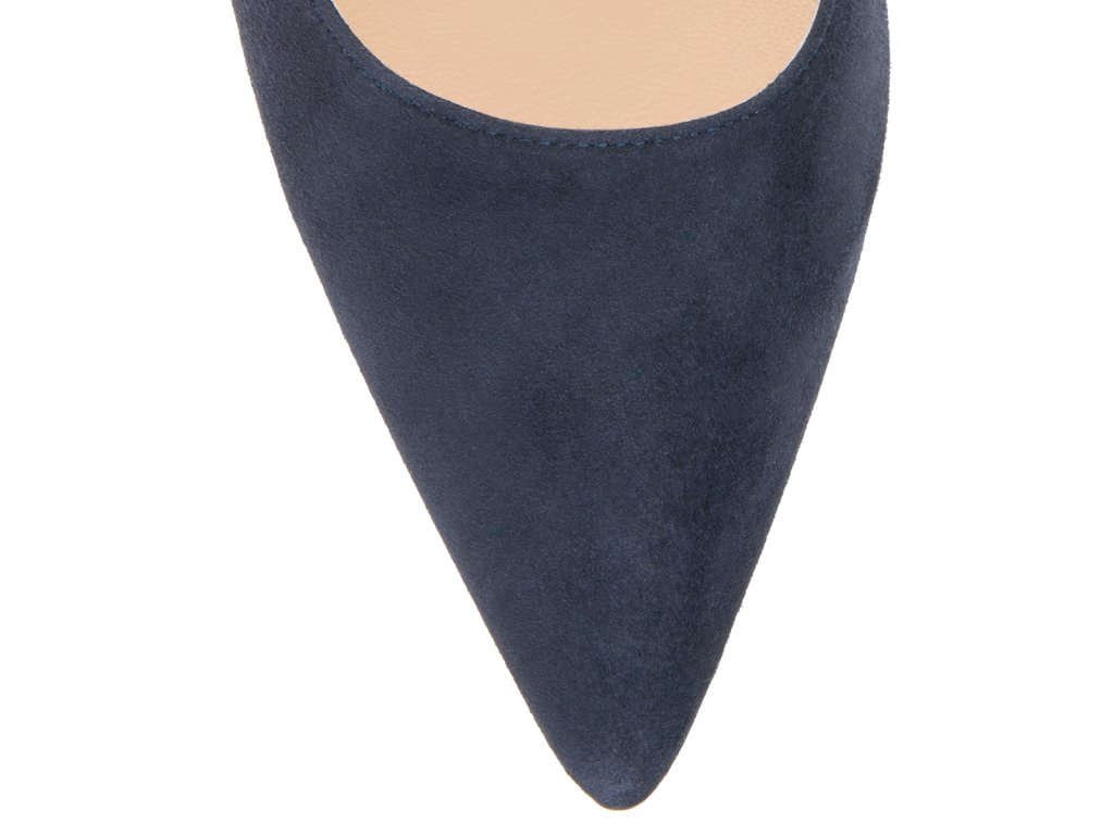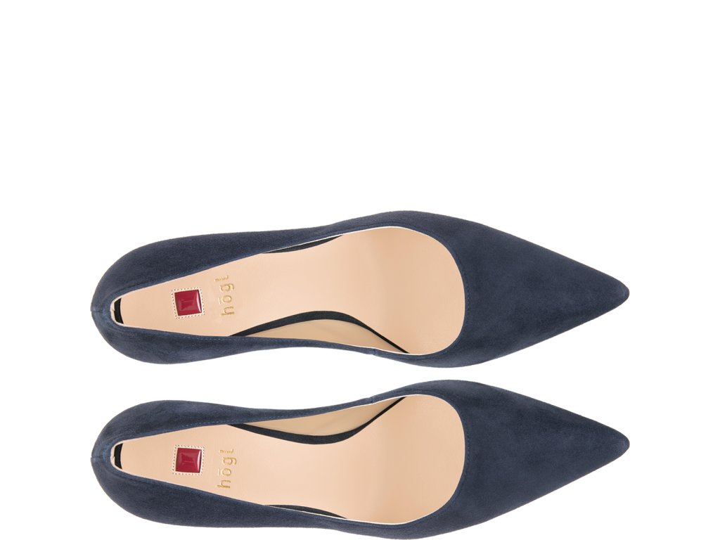 Dámské lodičky Högl z broušené kůže (semiš) na vysokém jehlovém podpatku v tmavě modré barvě. Obuv je vyrobena z jehněčí kůže, má špičatý tvar a vysoký jehlový podpatek o výšce 95 mm. Tyto klasické jednoduché lodičky jsou vrcholem elegance a luxusu, takže pokud potřebujete lodičky na formální společenské události, budou pro Vás ideální volbou. Tento typ obuvi bývá standardně větší, takže doporučujeme zvolit menší velikost.