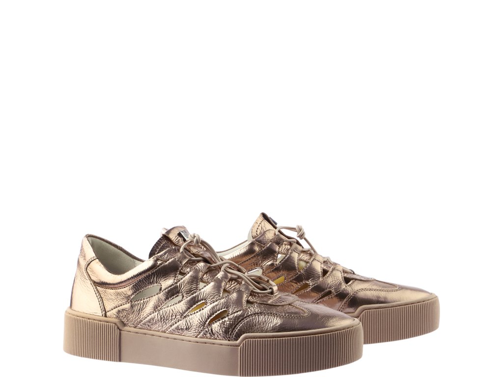 Nádech lesku se setkává se sezónní lehkostí: naše tenisky „Connie“ jsou elegantně-ležérním a poutavým doplňkem vašeho letního šatníku. Spolu s letními výstřihy přitahuje pozornost metalický povrch měkké kůže. Plochá podrážka v dobře sladěné béžové barvě a elastické šněrování naopak umožňují rychlé a snadné nazouvání. Super měkké a lehké vložky z paměťové pěny spolu s vysoce kvalitní koženou podšívkou zaručují vynikající a odpružené pohodlí při nošení. Paměťová pěna vždy znovu získá svůj původní tvar a zároveň se s každým krokem dokonale přizpůsobí tvaru vašich nohou.