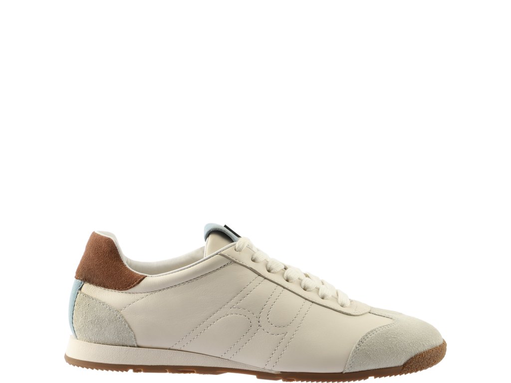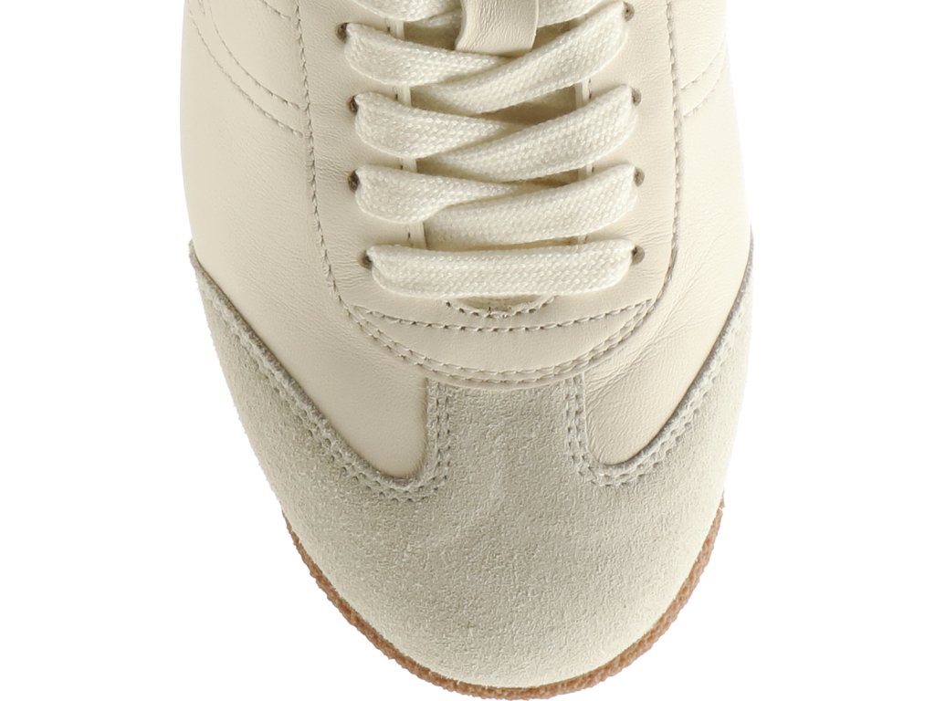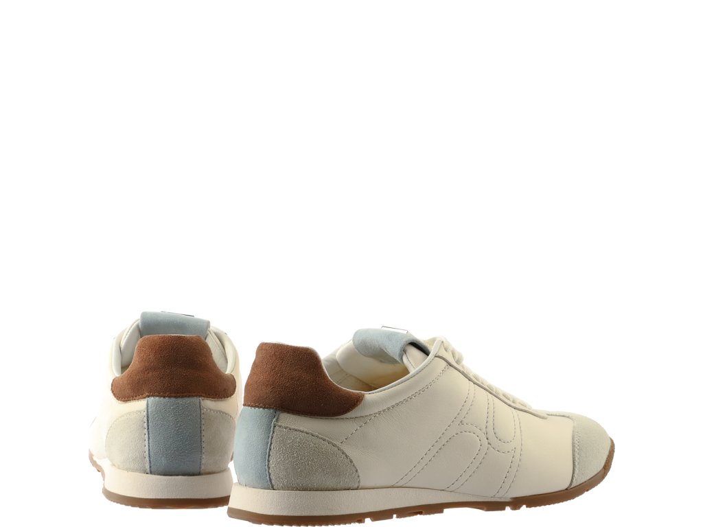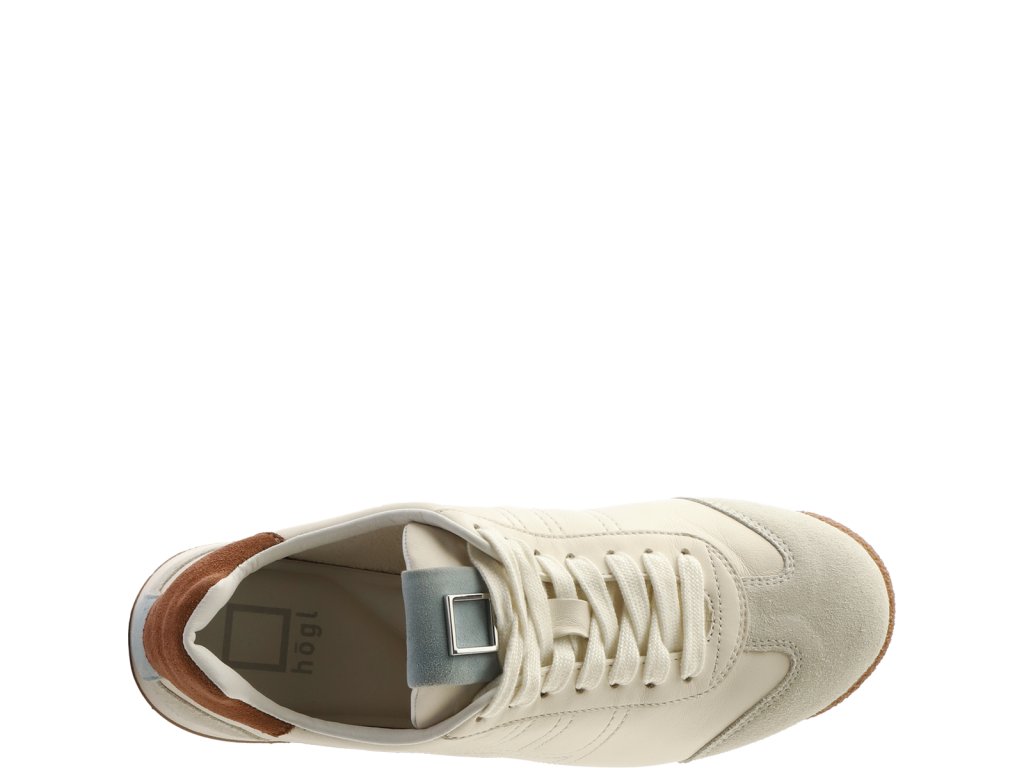 Všestranná volba s elegantním a ležérním vzhledem: naše v podstatě krémově zbarvené kožené retro tenisky „Kai“ byly vylepšeny o šedé, hnědé a světle modré semišové aplikace. Decentní dvoubarevná podrážka skvěle ladí s designem. Uvnitř tyto dámské boty zaujmou měkkou bavlněnou podšívkou z froté látky a polstrovanými stélkami z paměťové pěny. Tyto vysoce kvalitní stélky vždy znovu získají svůj původní tvar a přizpůsobí se každému vašemu kroku – můžete se proto těšit na nebesky měkké pohodlí při nošení. Prošívání na boku těchto udržitelných tenisek má tvar charakteristického loga Högl – pečeť kvality, která symbolizuje prémiovou obuv a perfektní řemeslné zpracování.