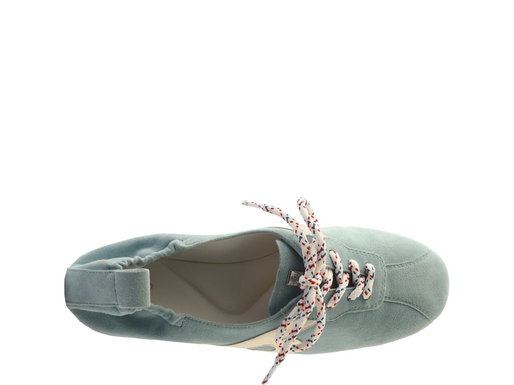Naše „sneakeriny“ dodávají létu svěží atletický nádech – kombinace tenisek a balerín vytváří zcela novou siluetu, která je neuvěřitelně všestranná. Tyto dámské boty jsou vyrobeny z krásně měkkého sametového semiše a jsou vyrobeny udržitelným způsobem. Design se vyznačuje odstíny modré a bílé v kombinaci s ležérními detaily a ženským šarmem. Decentní ploché podrážky, tkaničky a lehké řasení na patách definují design. Tyto boty, vyrobené exkluzivní technikou Sacchetto a opatřené paměťovou pěnou, kombinují ženský střih s výjimečným pohodlím. Měkký a flexibilní střih se dokonale přizpůsobí vašim nohám – to je elegance s příjemným pocitem.